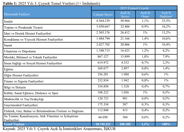 İşKur 2025 yılı 3. Çeyrek verilerine göre açık iş sayısı 200 bin.