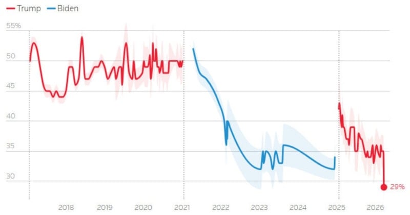 ABD ve İsrail’in 28 Şubat’ta İran’a yönelik başlattığı saldırılar benzin fiyatlarında önemli bir artışa neden oldu. Katılımcıların yalnızca yüzde 25’i Trump’ın hayat pahalılığıyla mücadelesini yeterli buluyor. Ekonomiye ilişkin genel onay oranı ise yüzde 29 seviyesine geriledi. Bu rakam, Trump’ın başkanlık kariyeri boyunca elde ettiği en düşük değerlere işaret ettiği gibi, selefi Joe Biden’ın dönemindeki ekonomik onay oranlarının da altında kalıyor. Ekonomik endişeler ve artan yaşam maliyetleri, Biden’ın seçim kaybında etkili olmuştu; Trump ise güçlü ekonomi vaadiyle seçim kampanyası yürütmekteydi.